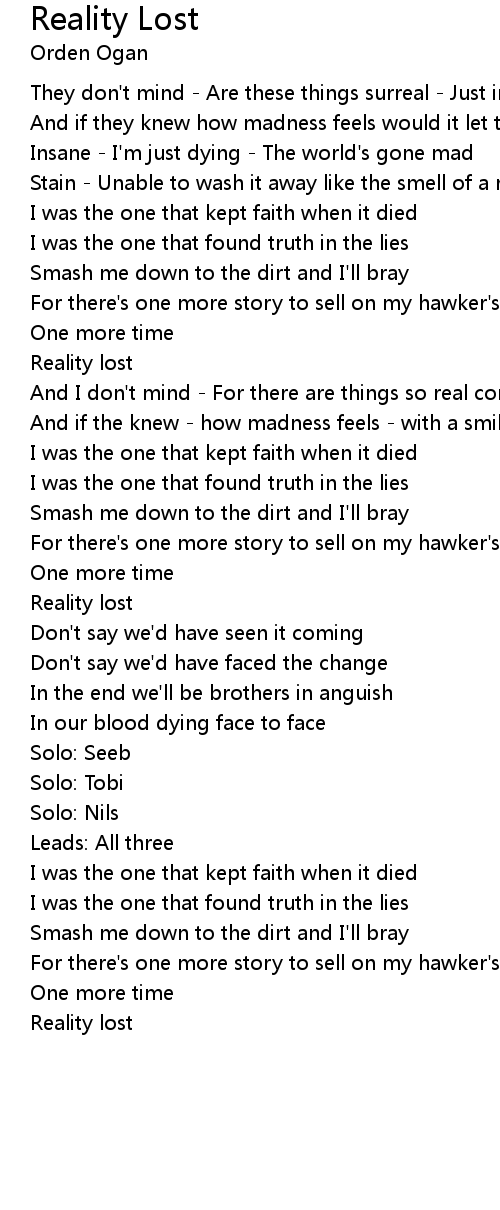 Reality Lost Lyrics