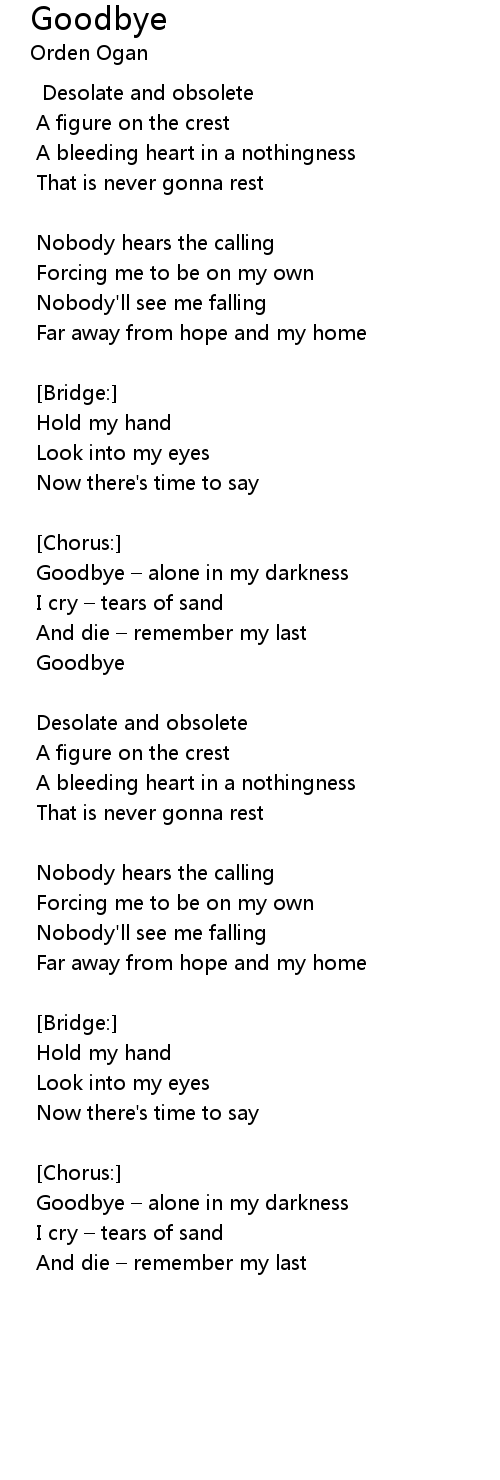 | Goodbye alone in my darkness | |