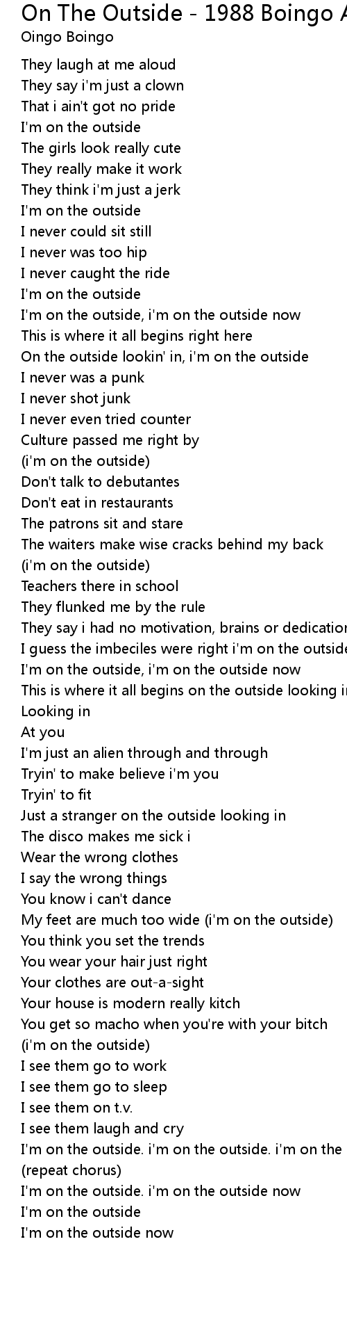 On The Outside - 1988 Boingo Alive Version Lyrics