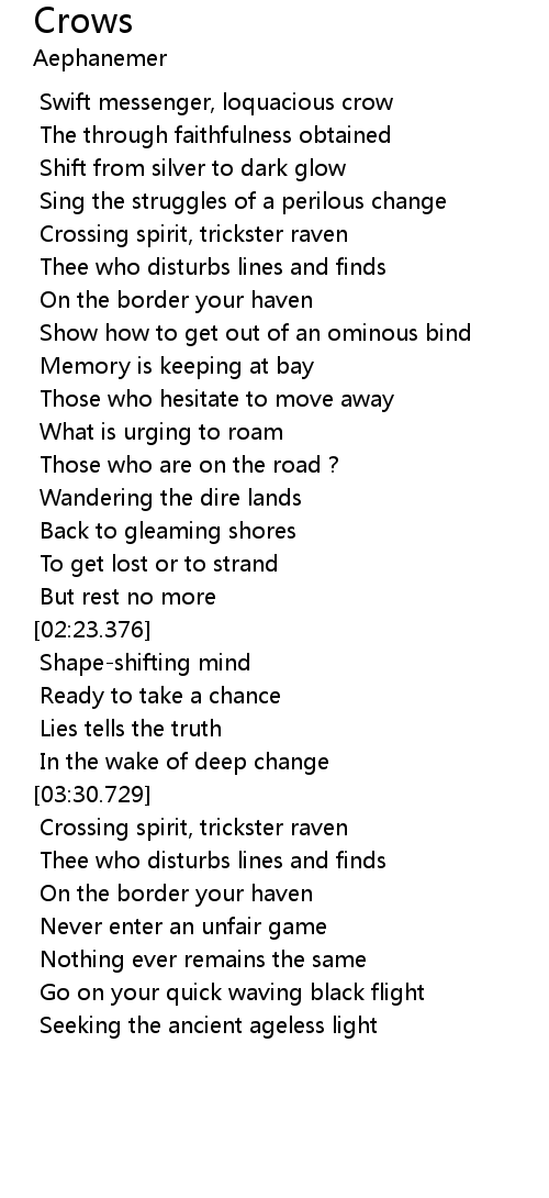 Swift messenger, loquacious crow |