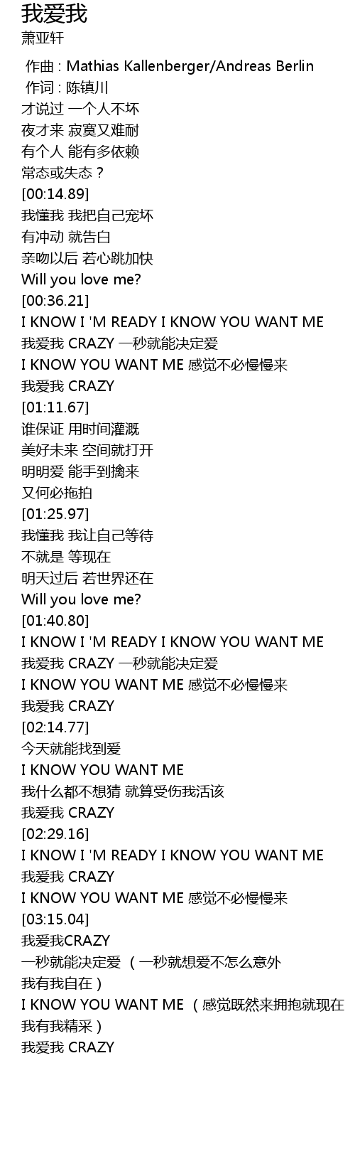 | [03:15.99] | wo ai wo CRAZY |