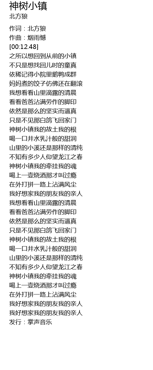 | [03:22.48] | 神树小镇我的故土我的根 |