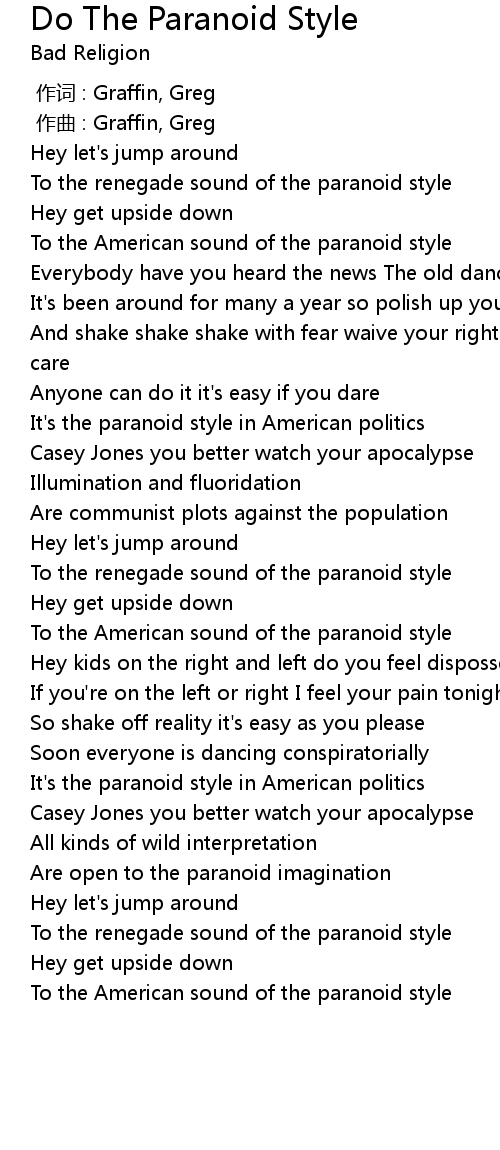 | [00:41.59] | To the renegade sound of the paranoid style |
