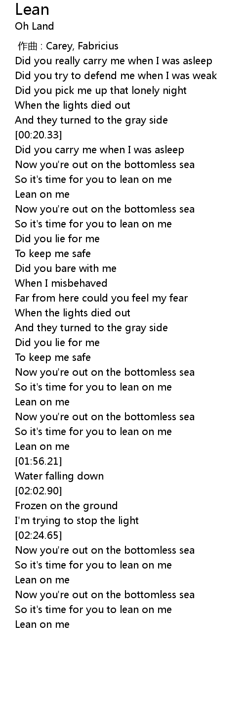 | [00:46.27] | Now you' re out on the bottomless sea |