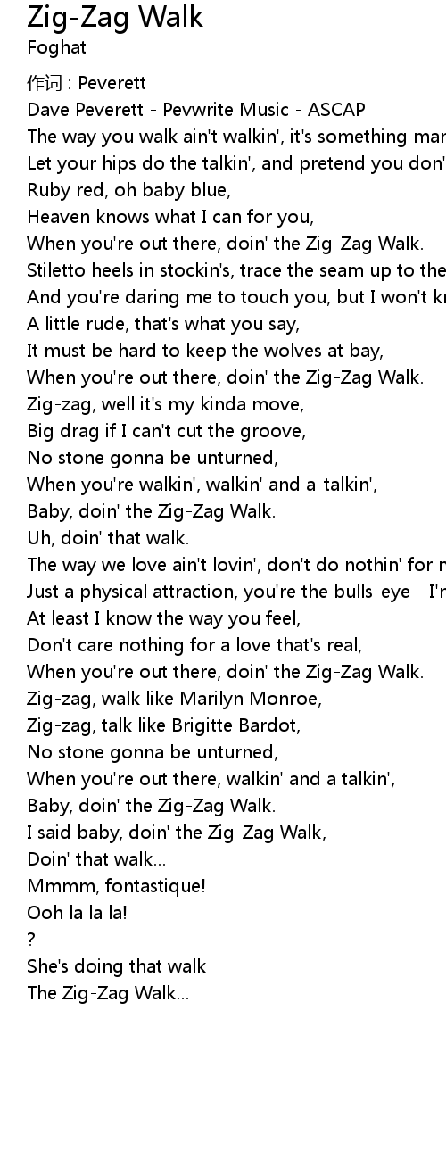 | I said baby, doin' the Zig-Zag Walk, | |