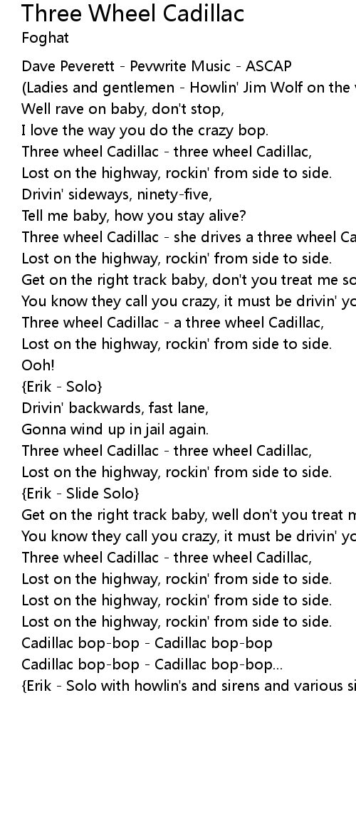 Three wheel Cadillac - she drives a three wheel Cadillac, |