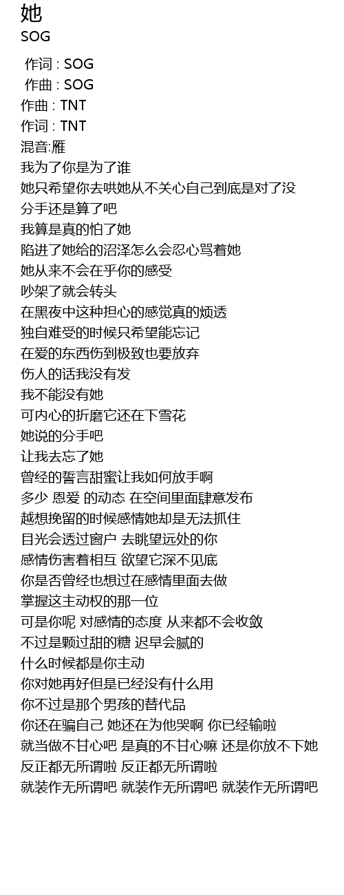 | [00:00.000] | 作词 : SOG |