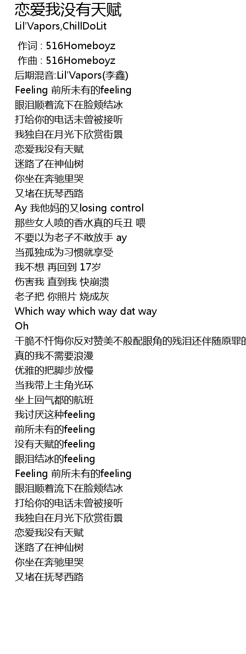 | [00:00.000] | 作词 : 516Homeboyz |