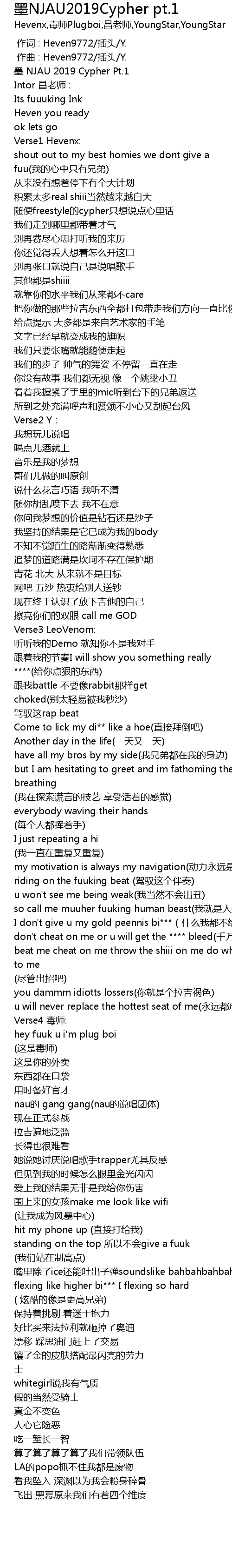 | [00:04.201] | mò NJAU 2019 Cypher Pt. 1 |
