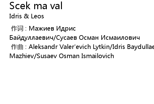 | [00:00.000] | 作曲 : Aleksandr Valer'evich Lytkin/Idris Baydullaevich Mazhiev/Susaev Osman Ismailovich |