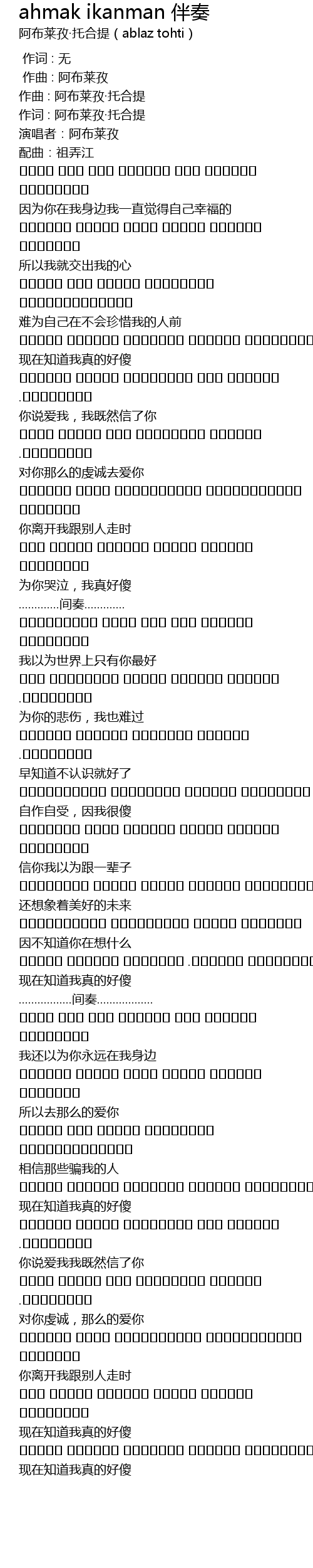 | [00:14.896] | 作词 : 阿布莱孜·托合提 |