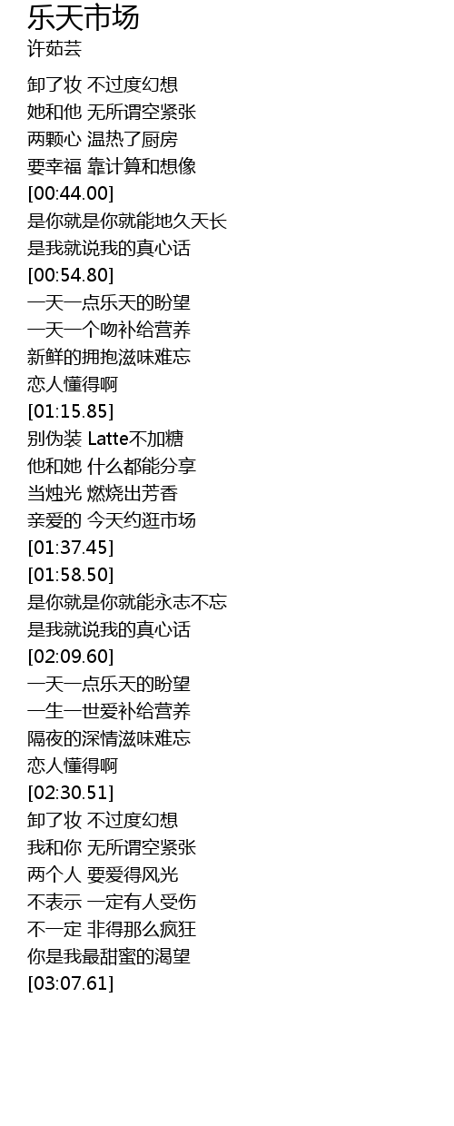 | [01:32.71] | 亲爱的 今天约逛市场 |
