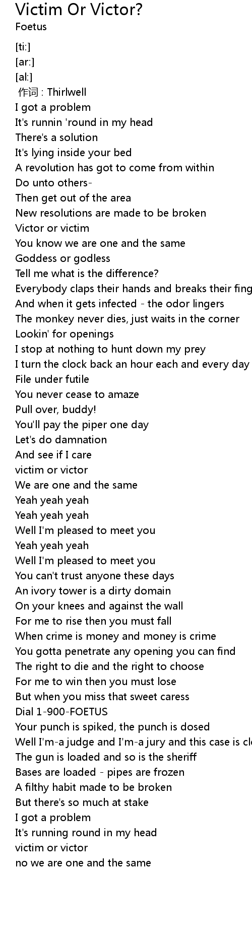 | [00:49.44] | Victor or victim |