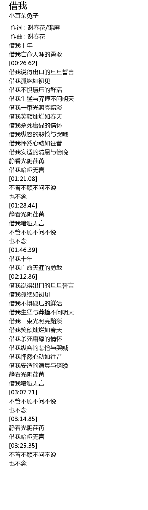 | [00:41.72] | 借我生猛与莽撞不问明天 |