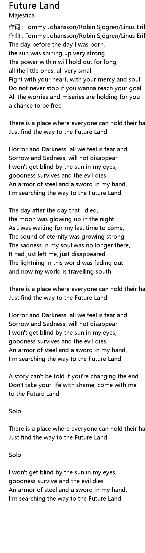 | 作词 : Tommy Johansson/Robin Sjögren/Linus Eriksson | |
