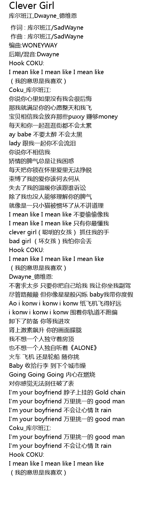| [01:14.898] | clever girl(聪明的女孩) 抓住我的手 |