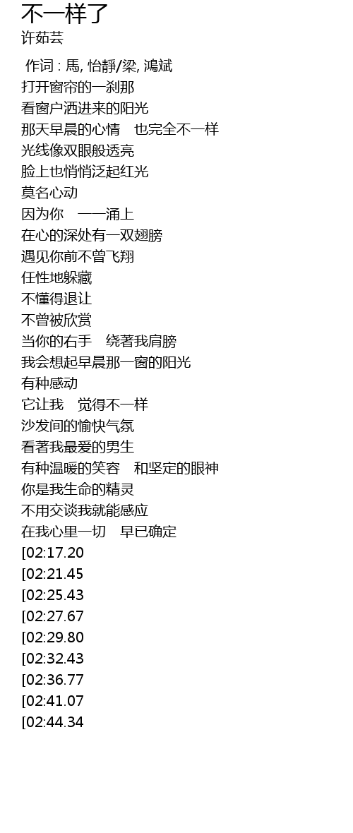 | [03:16.40][02:44.34] | 都不一样了 |