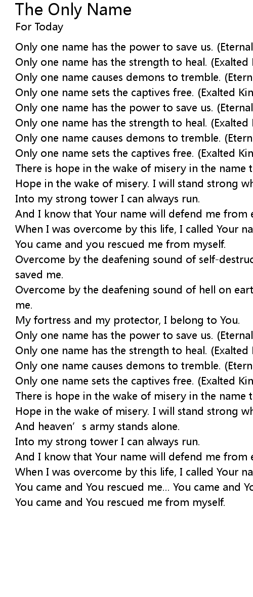 | Only one name has the power to save us. Eternal One, You stand alone. | |