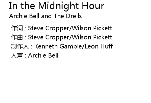 | [00:00.000] | zuo ci : Steve Cropper Wilson Pickett |