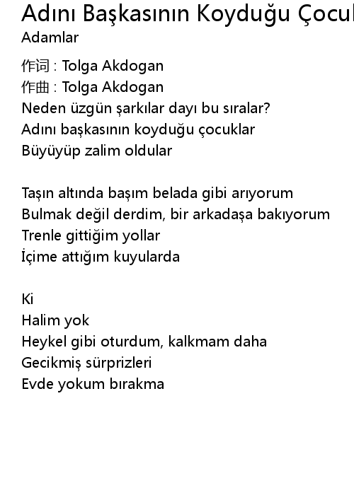 | Song | Adını Başkasının Koyduğu Çocuklar |