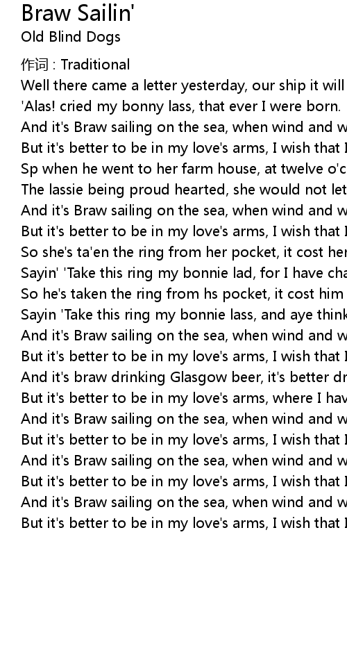 | And it's Braw sailing on the sea, when wind and weather's fair, | |