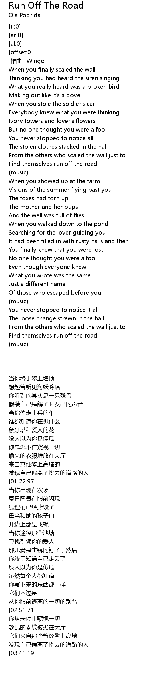 | [01:06.97] | The stolen clothes stacked in the hall |