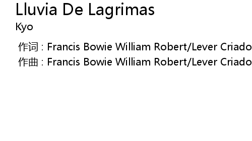| [00:00.000] | 作词 : Francis Bowie William Robert/Lever Criado Hearton Eduardo |