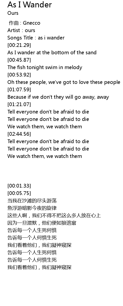 | [00:05.75] | Songs Title:as i wander |