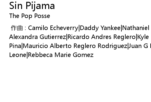 | [00:00.000] | 作曲 : Camilo Echeverry|Daddy Yankee|Nathaniel Company|Natalia Alexandra Gutierrez|Ricardo Andres Reglero|Kyle Michael Shearer|Rafael a Nieves Pina|Mauricio Alberto Reglero Rodriguez|Juan G Rivera Vazquez|Jonathan David Leone|Rebbeca Marie Gomez |
