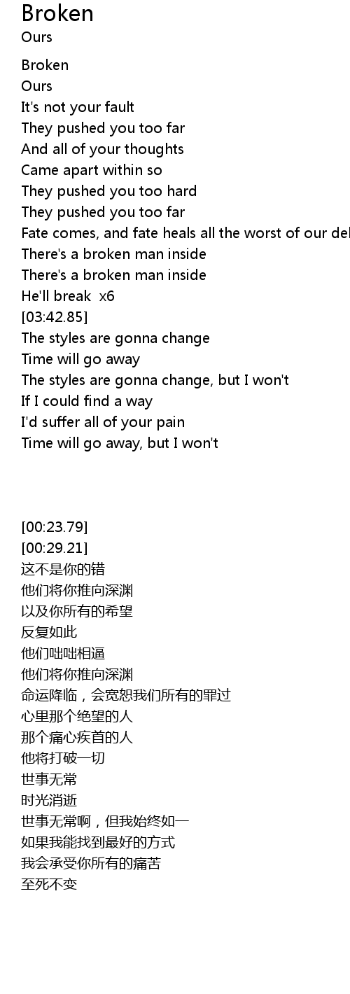 | [02:46.79] | Fate comes, and fate heals all the worst of our debts |