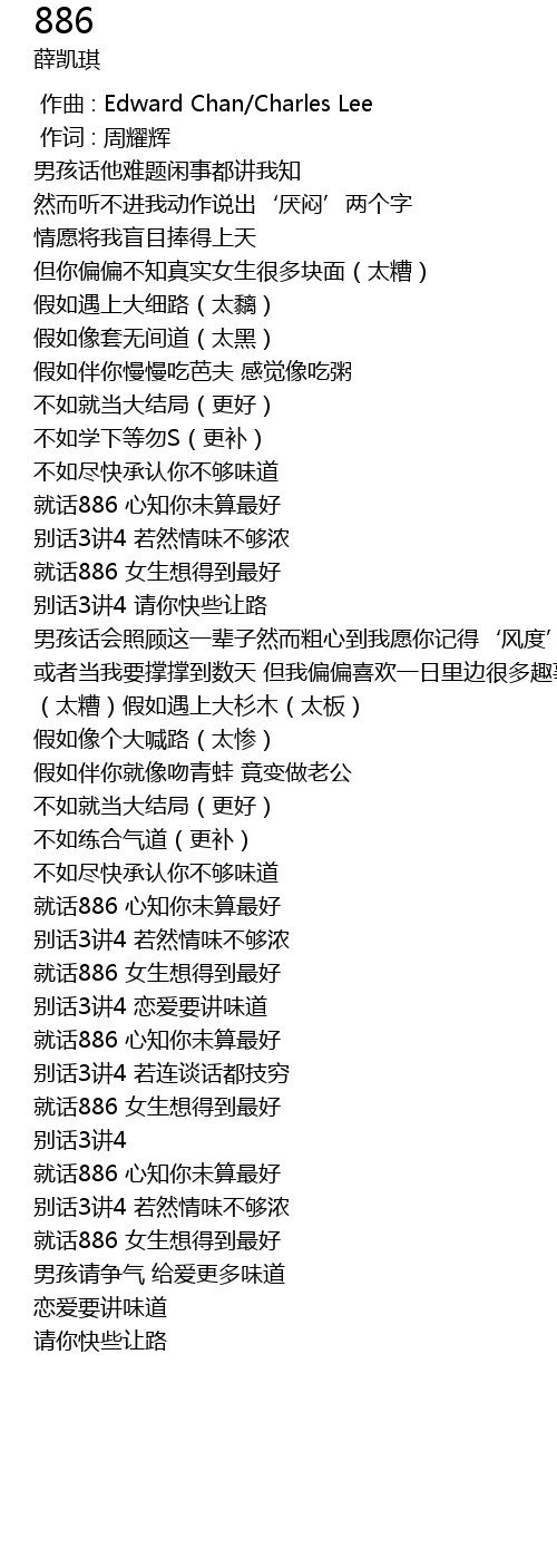 | [02:24.320] | 就话886 心知你未算最好 |