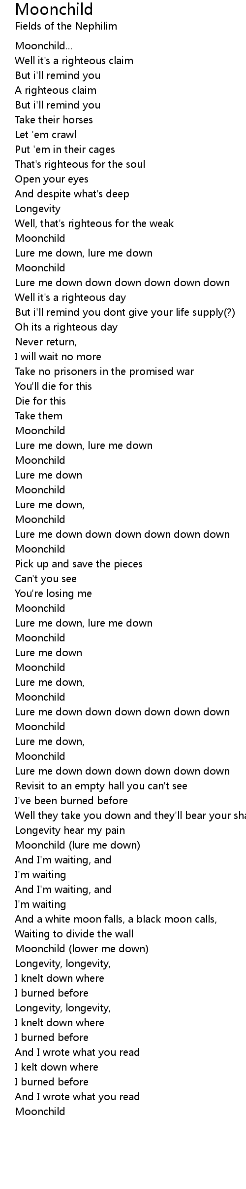 Moonchild (lower me down) |