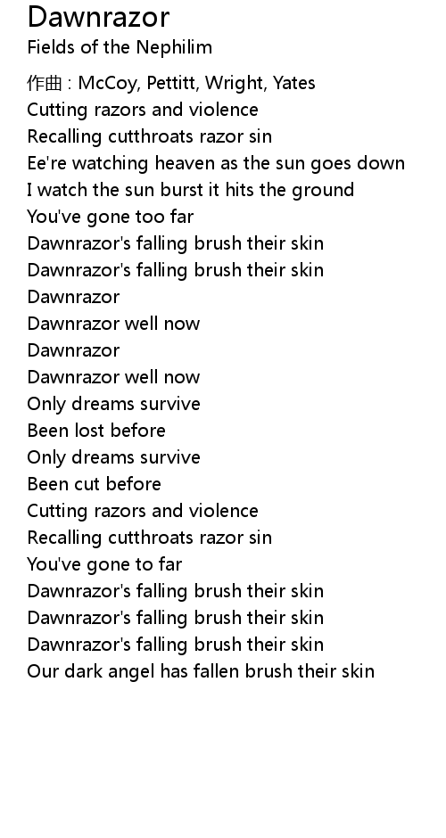 | Dawnrazor' s falling brush their skin | |