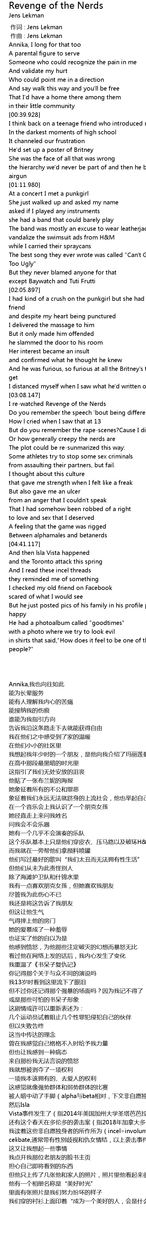 | [03:19.458] | I rewatched Revenge of the Nerds |