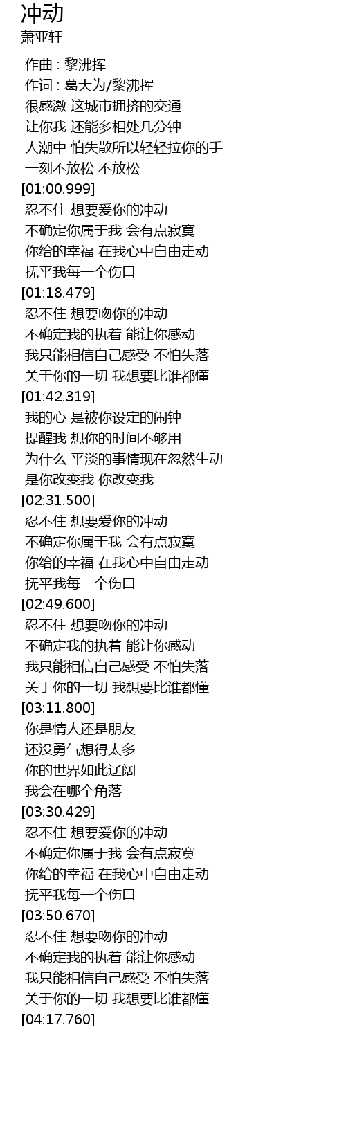 | [01:01.469] | 忍不住 想要爱你的冲动 |