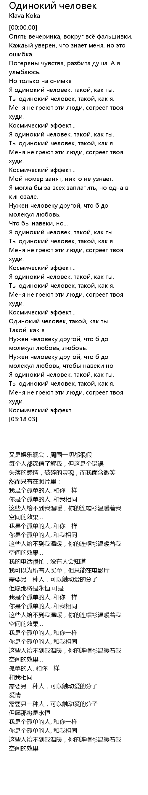 Я одинокий человек, такой, как ты. |