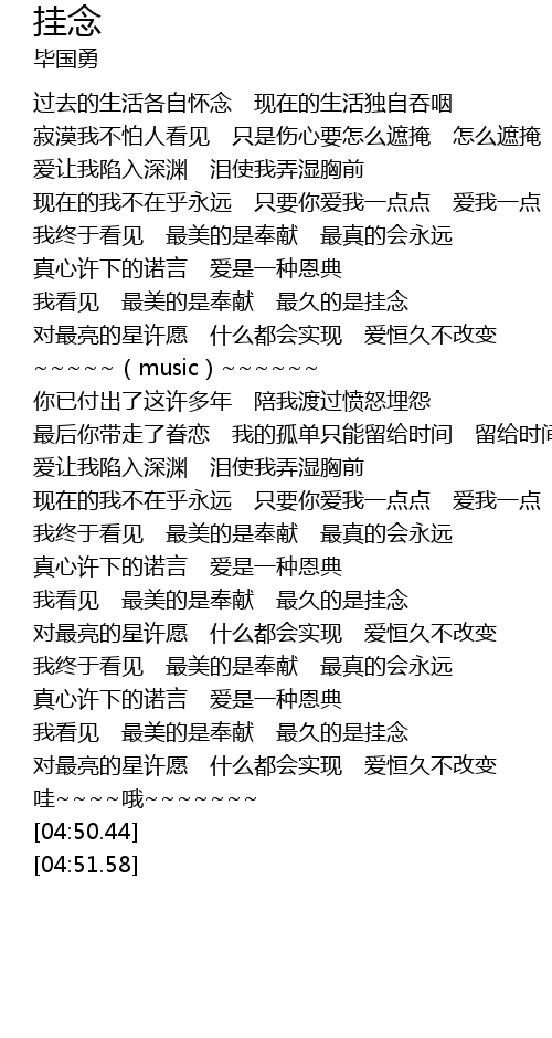 | [01:37.73] | 我看见 最美的是奉献 最久的是挂念 |