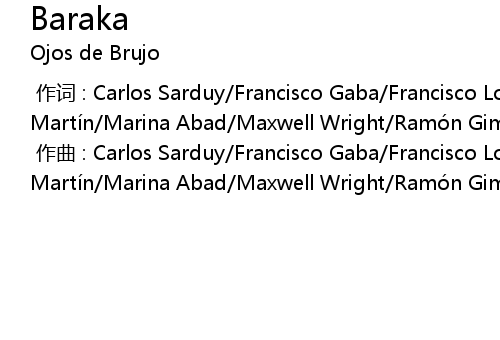 | [00:00.000] | 作词 : Carlos Sarduy/Francisco Gaba/Francisco Lomeña/Javier Martín/Marina Abad/Maxwell Wright/Ramón Giménez/Xavier Turull |