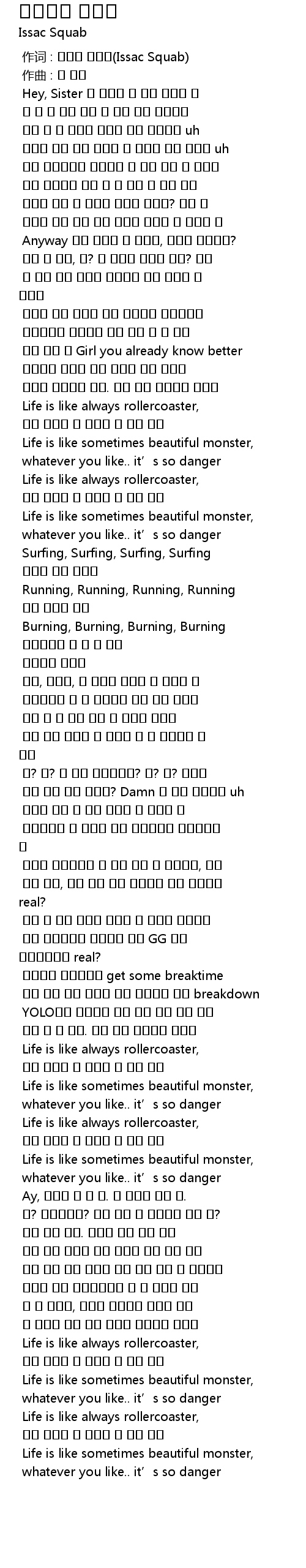| [00:00.000] | 作词 : 아이삭 스쿼브(Issac Squab) |