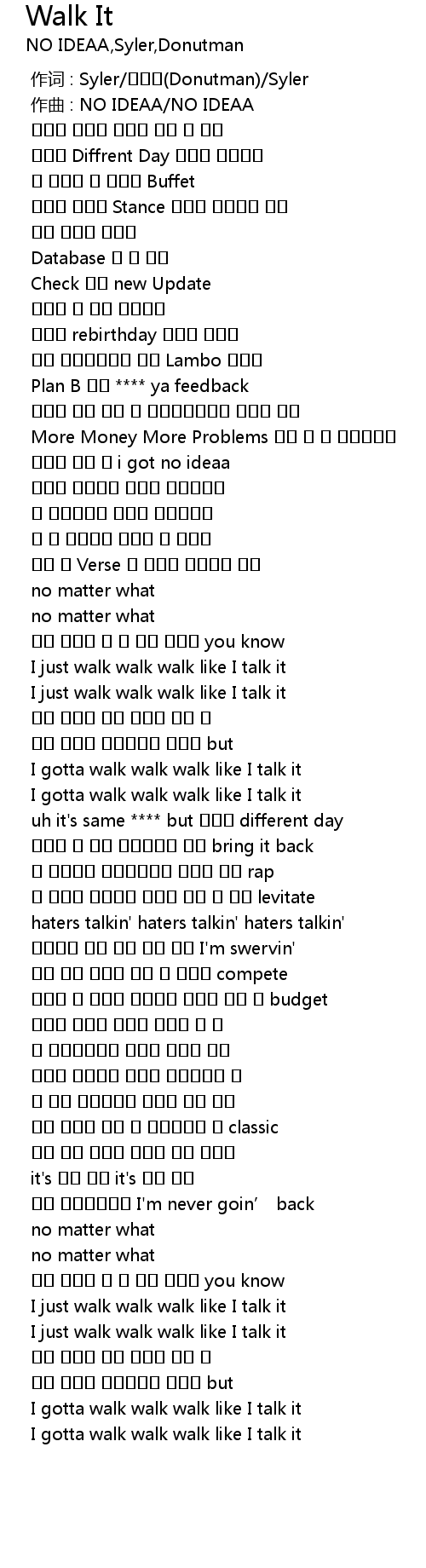 | [01:25.611] | I gotta walk walk walk like I talk it |