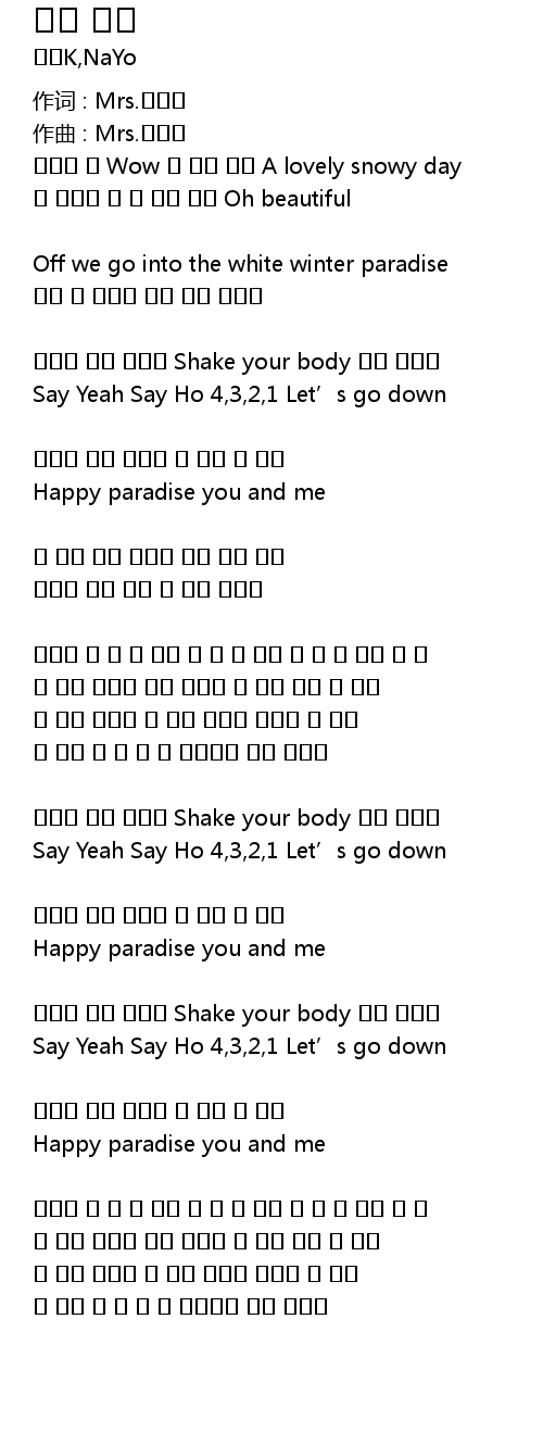 샤랄라 유후 라랄라 Shake your body 크게 외쳐봐
