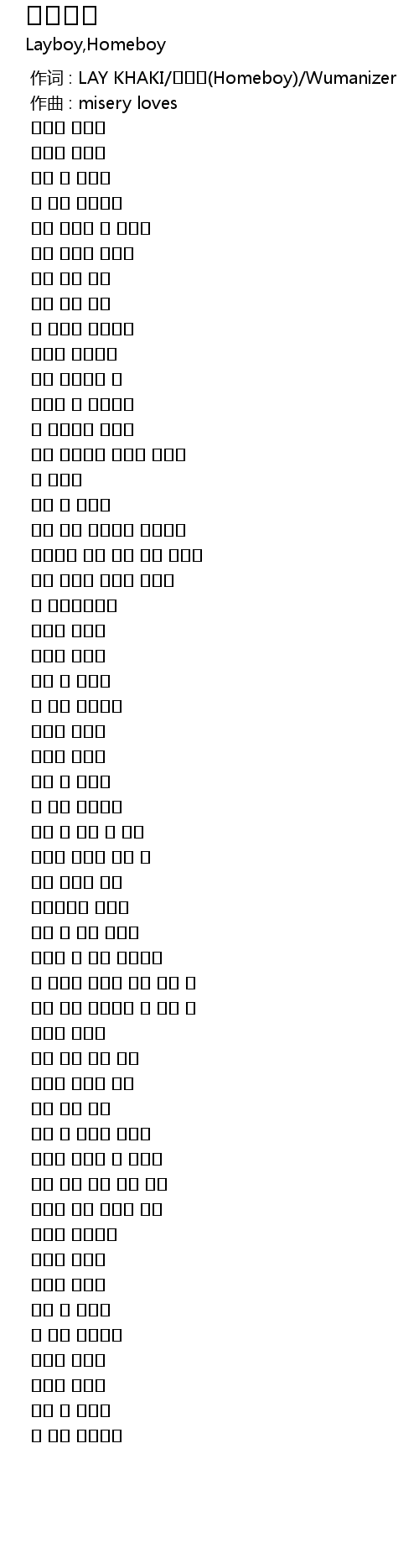 | [00:00.000] | 作词 : LAY KHAKI/홈보이(Homeboy)/Wumanizer |