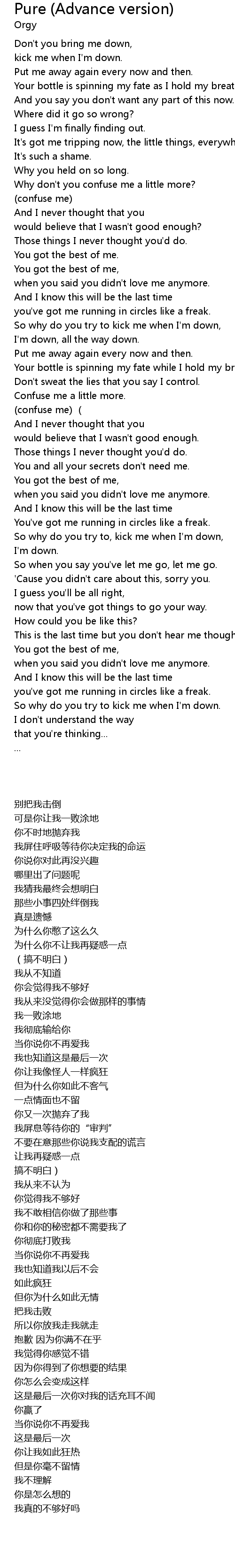 | [03:09.110] | So why do you try to kick me when I'm down. |