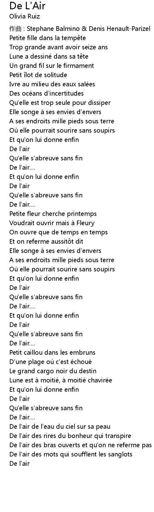 | De l' air des bras ouverts et qu' on ne referme pas | |