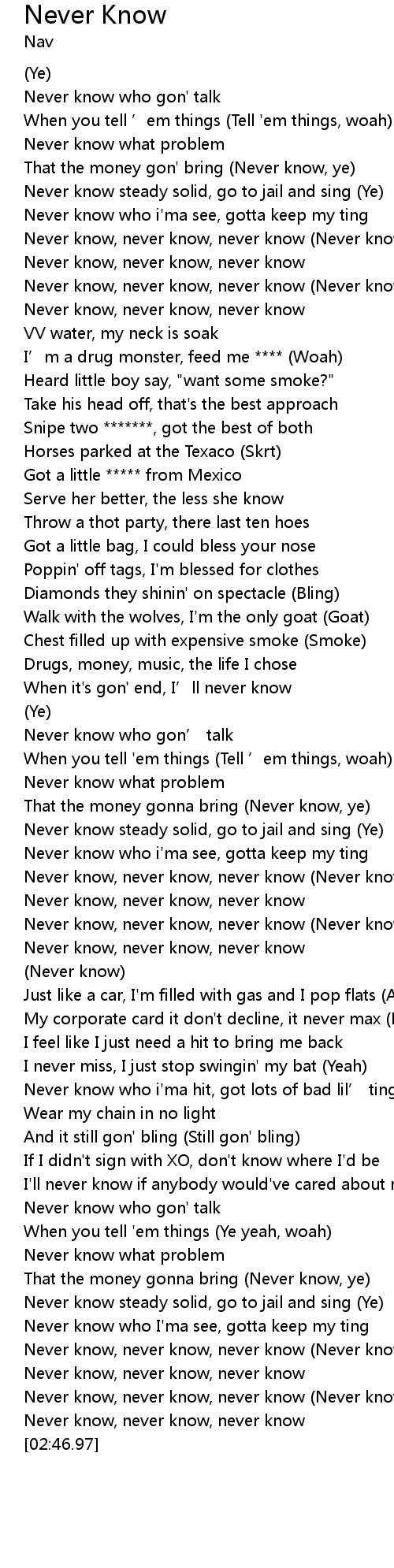 | [01:31.21] | Never know, never know, never know (Never know) |
