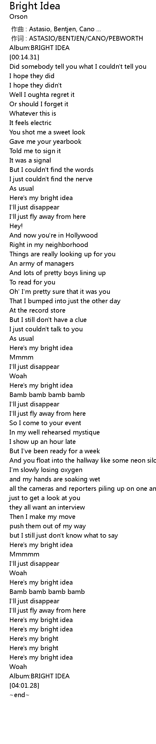 | [00:07.64] | Album: BRIGHT IDEA |