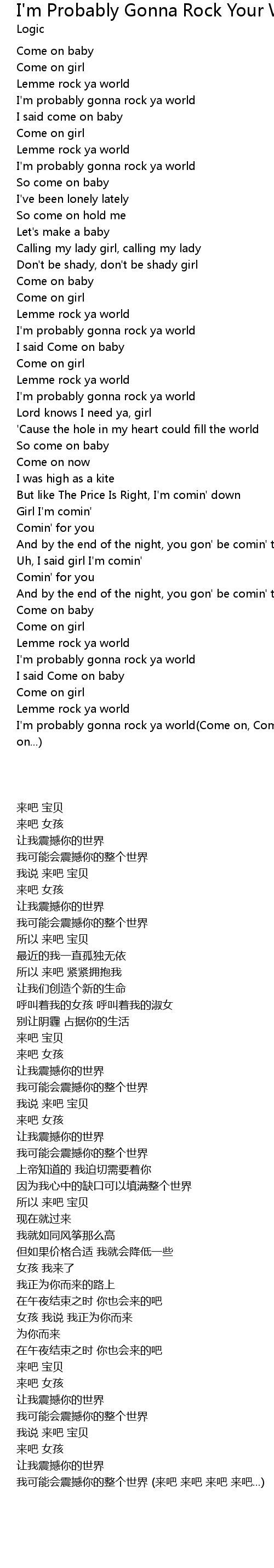 [02:21.71] I'm probably gonna rock ya world(Come on, Come on, Come on, Come on...)
