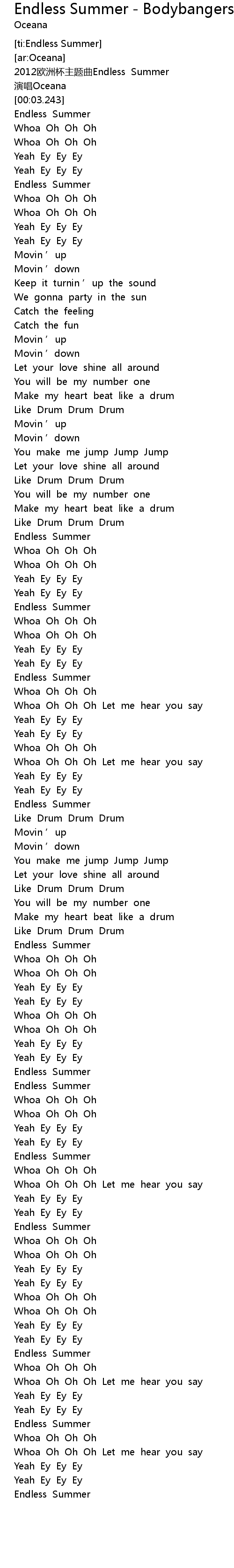 | [00:00.754] | 2012 ōu zhōu bēi zhǔ tí qū Endless Summer |