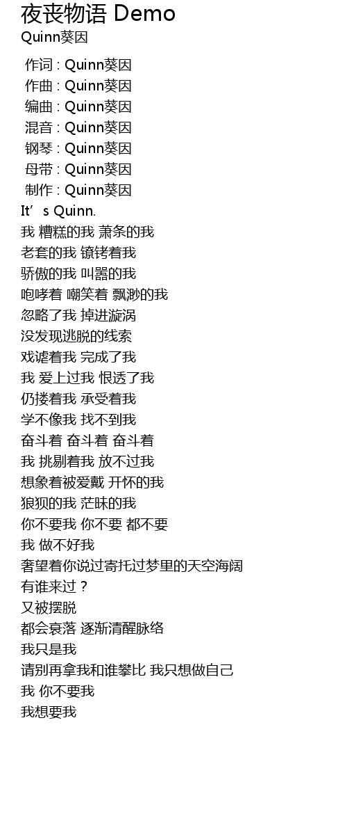 | [00:01.000] | 作曲 : Quinn葵因 |