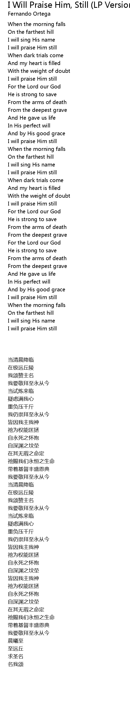 | [00:27.56] | I will praise Him still |